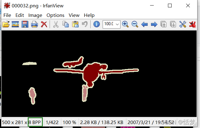 在观察标签图像时,发现一个问题,该文件夹中标签图像是8位位深,但是看上去却是彩色图像