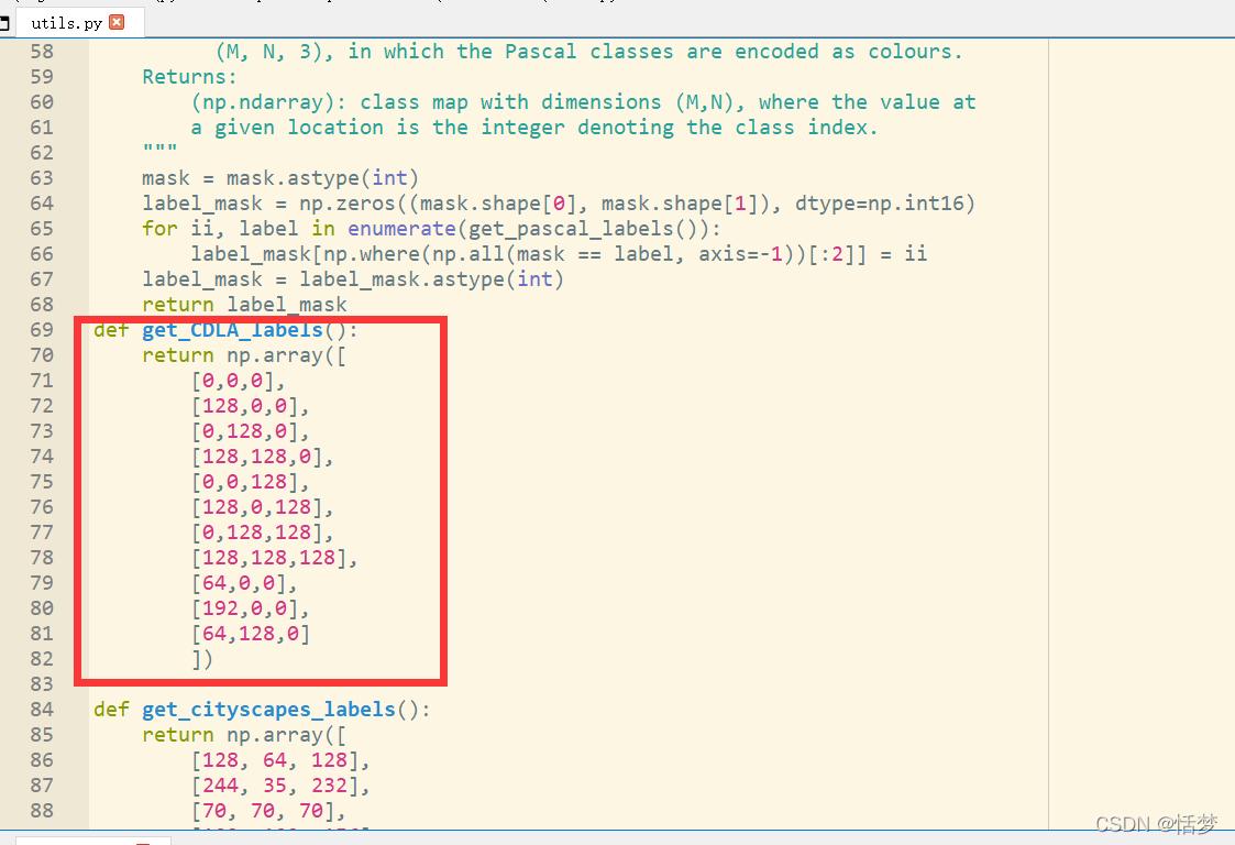 (3)修改dataloaders/utils.py,定义我们自己的类别的mask的颜色。