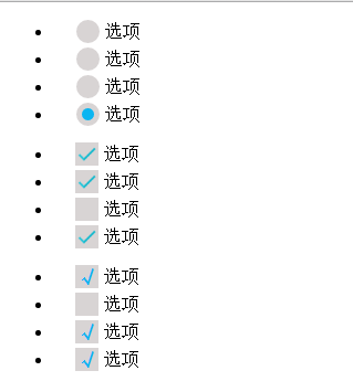 <li><input type="radio" id="radio01" name="check"><label for="radio01"></label>选项</li>