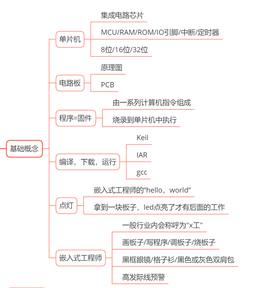 先从小菜鸡开始,小菜鸡就是一个纯小白,就是你茫然无知什么都不懂。需要学习的有三个部分,基础概念、C语言基础、单片机基础。
