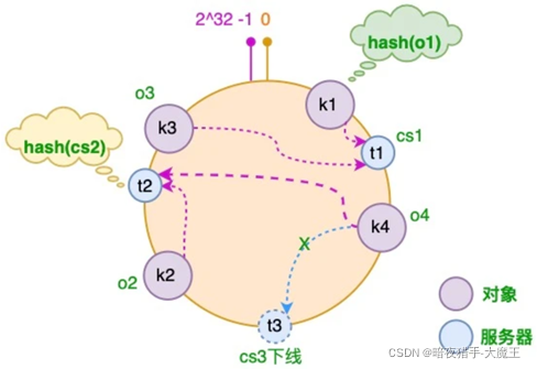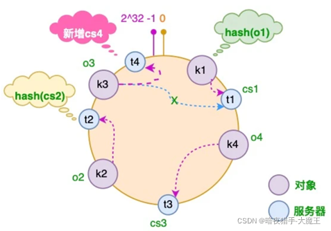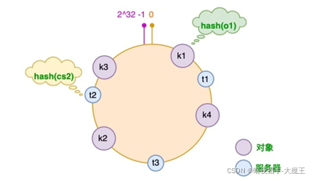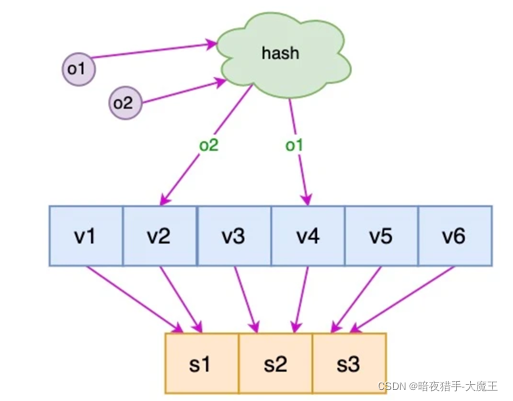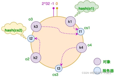 可以通过引入虚拟节点来解决负载不均衡的问题。即将每台物理服务器虚拟为一组虚拟服务器,将虚拟服务器放置到哈希环上,如果要确定对象的服务器,需先确定对象的虚拟服务器,再由虚拟服务器确定物理服务器。
