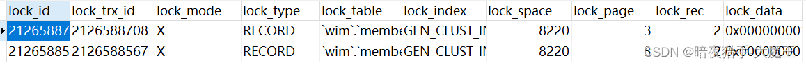LOCK_SPACE锁定记录的表空间 ID,如果LOCK_TYPE是RECORD; 否则NULL。 -