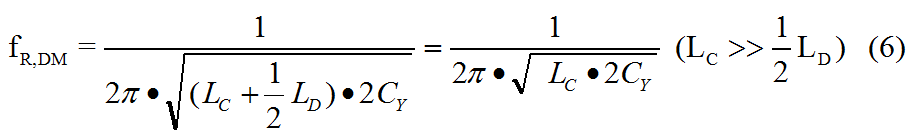 对于差模等效电路,滤波器模型为一个三阶CLC型低通滤波器,将等效差模电感记为LDM,等效差模电容记为CDM(令Cx1=Cx2且认为Cy/2<<Cx2),则有