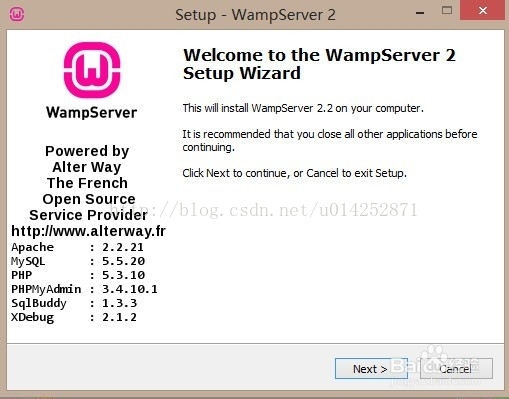 安装,一路点击next,apache+sql+phpmyadmin的环境一键搭好。
