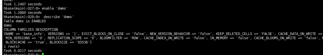 hbase(main):001:0>drop 'test_ahyi' --原表就不能用了