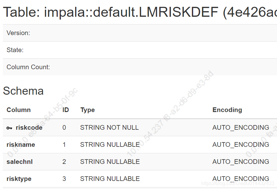 分析错误原因是:Primary key column riskcode is not set。可无论是oracle中的LMRISKDEF表还是通过impala创建的LMRISKDEF表都是具有主键的(还特意将字段在select语句中全部列出,),查询语句字段顺序与kudu表顺序也一致(impala建表主键必须在前),那就可能是查询出的字段与目的字段无法匹配。