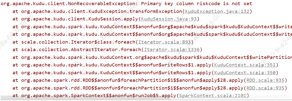 便出现了:org.apache.kudu.client.NonRecoverableException: Primary key column riskcode is not set
