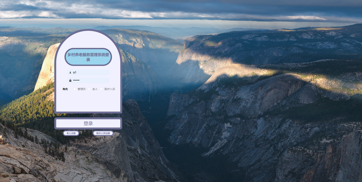 乡村养老服务管理系统登录针对用户设置的功能有:查看并修改个人信息,查看生活照料管理信息,查看医疗信息等内容。
