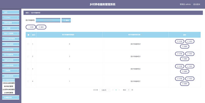 乡村养老服务管理系统登录针对管理员设置的功能有:添加并管理各种类型信息,管理用户账户信息,管理生活照料管理信息,管理医疗信息等内容。