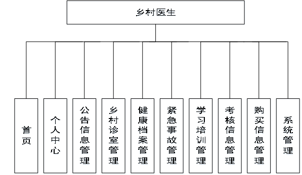 乡村医生登录进入医疗服务系统可以查看首页、个人中心、公告信息管理、乡村诊室管理、健康档案管理、紧急事故管理、学习培训管理、考核信息管理、购买信息管理、系统管理等内容,如图5-11所示。