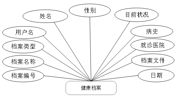健康档案管理,在健康档案管理页面可以填写档案编号、档案名称、档案类型、用户名、姓名、性别、目前状况、病史、就诊医院、档案文件、日期等进行添加,修改,删除或查看详细内容等操作,如图5-5所示。