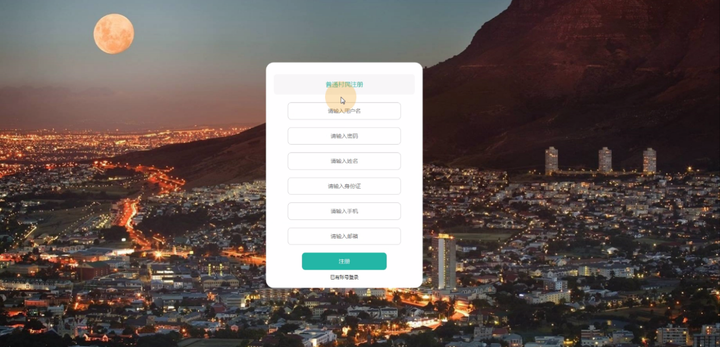 登录、普通村民注册,在普通村民注册页面通过填写用户名、密码、姓名、身份证、手机、邮箱等信息进行登录、普通村民注册,如图5-24所示。