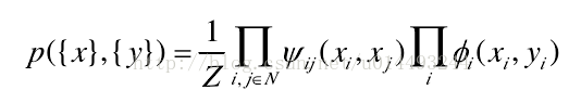 来表示相邻节点之间的势能量。这样我们可以得到隐含场景xi和一个显式图像yi的联合概率: