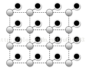 图中灰色点代表隐含节点,黑色点表示显示节点,实线表示似然函数,虚线表示势函数。