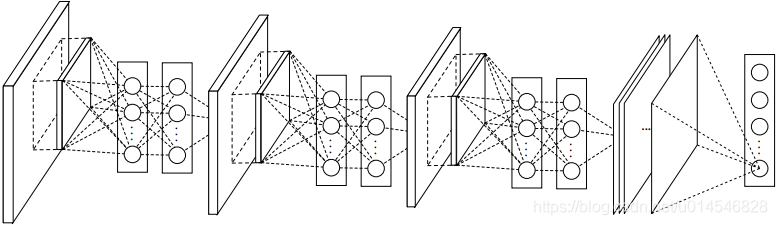 Figure 2: The overall structure of Network In Network. In this paper the NINs include the stacking of three mlpconv layers and one global average pooling layer.