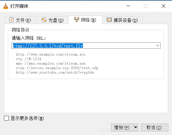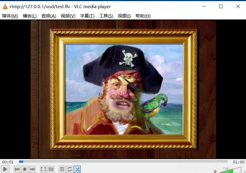 可以看到在vlc中可以播放媒体文件test.flv了,如下图所示: