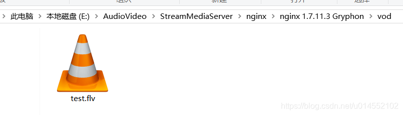 在vod目录中放入一个flv文件(貌似nginx的点播只支持flv文件,mp4文件是不支持的),如下图所示: