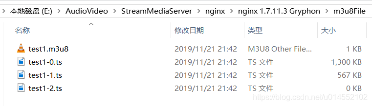 执行上诉命令后,可以看到在目录m3u8File中已经有了m3u8和ts文件输出了,如下图所示: