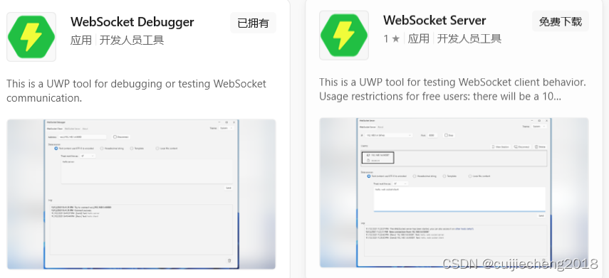 除此之外,Microsoft Store上还有各种发送http/websocket的工具。