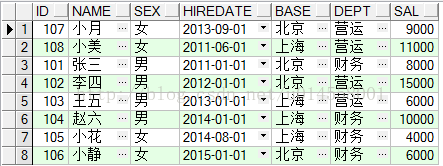 values (108, '小美', '女', to_date('01-06-2011', 'dd-mm-yyyy'), '上海','营运', 11000);