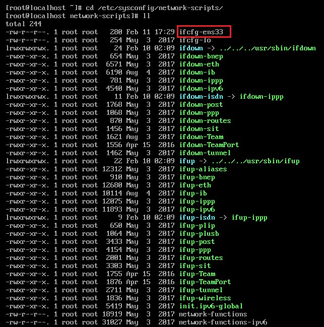 进入网卡配置文件目录 cd /etc/sysconfig/network-scripts