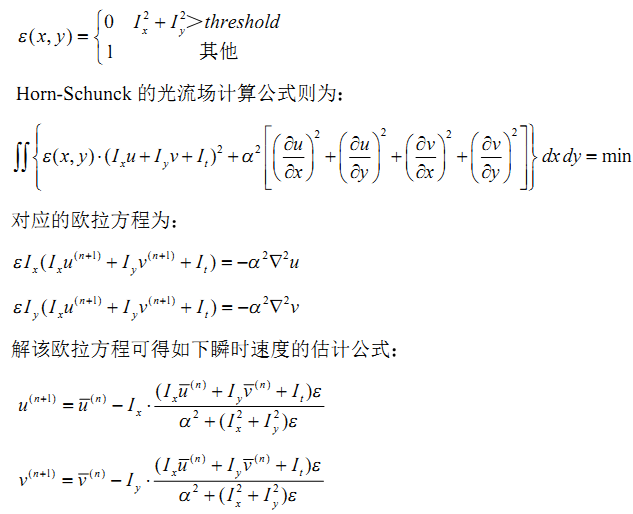 用uij与vij分别表示图像像素点(i,j)处的水平方向光流值与垂直方向光流值,每次迭代后的更新方程为