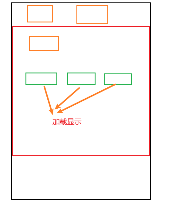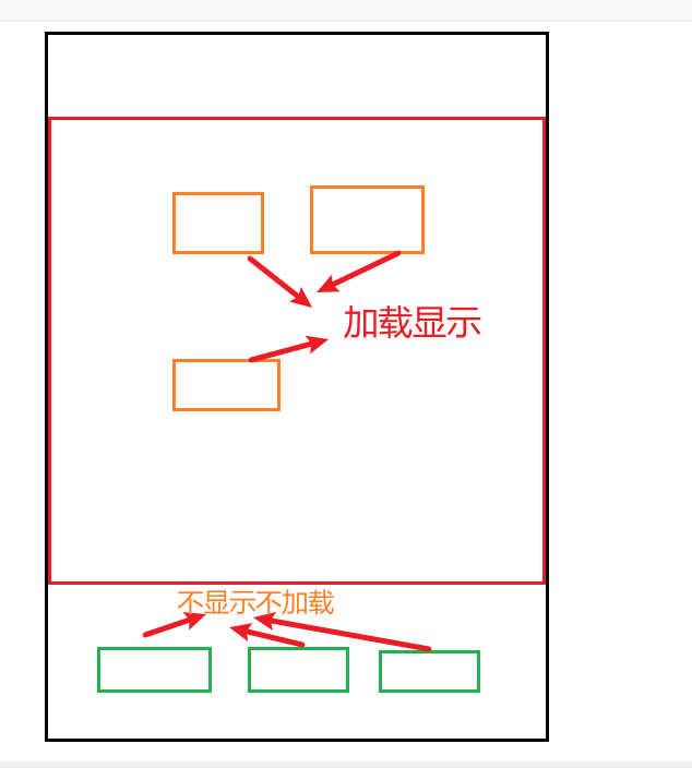 用户拖动滚动条,看到绿色的框框,这些绿色的框框才开始加载出来