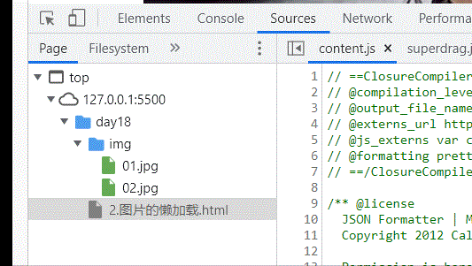 <div class="header"> <h2>图片展示</h2> </div> <div class="content"> <img data-src="./img/01.jpg" alt=""> <img data-src="./img/02.jpg" alt=""> <img data-src="./img/03.jpg" alt=""> <img data-src="./img/04.jpg" alt=""> <img data-src="./img/05.jpg" alt=""> <img data-src="./img/06.jpg" alt=""> <img data-src="./img/07.jpg" alt=""> <img data-src="./img/08.jpg" alt=""> <img data-src="./img/09.jpg" alt=""> <img data-src="./img/10.jpg" alt=""> <img data-src="./img/10.jpg" alt=""> <img data-src="./img/11.jpg" alt=""> <img data-src="./img/12.jpg" alt=""> </div>JavaScript代码