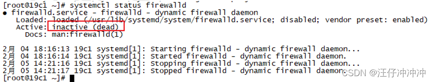 如下,dead表示未开启开机启动;inactive表示现在的状态是关闭