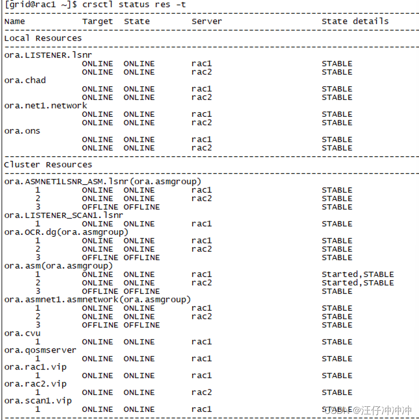 crsctl status res -t 查看集群状态