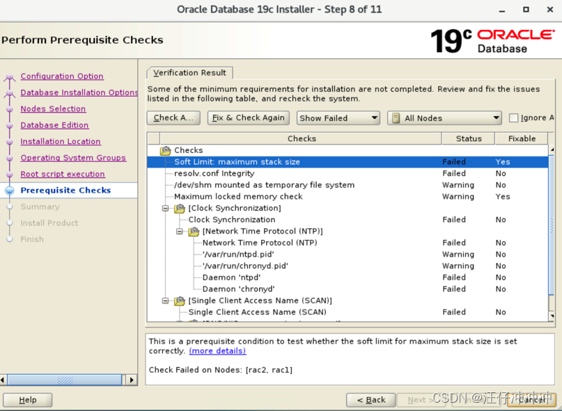 按照需求是否勾选EM,本文档不勾选,cvu跑出来的日志在grid用户下$ORACLE_BASE/crsdata/hostname/cvu/cvulog下
