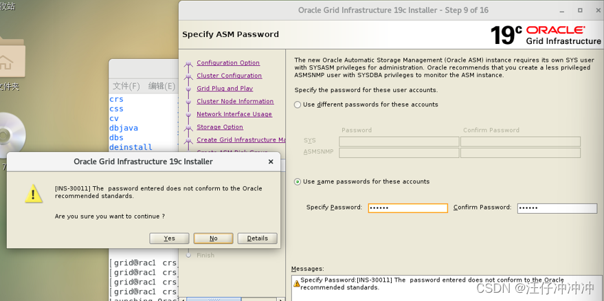 设置asm密码,一下报错可yes跳过