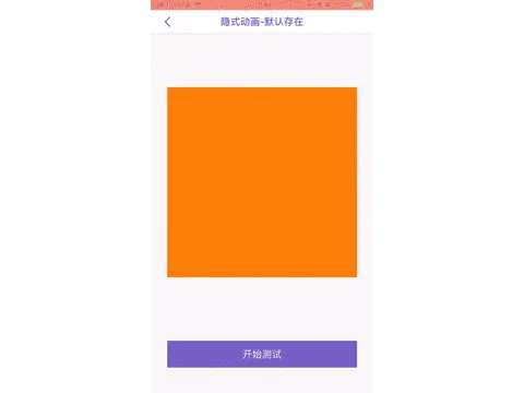 经过测试,我们会发现每次设置的颜色并不是立刻在屏幕上跳变出来,相反,它是从先前的值平滑过渡到新的值,这一切都是默认行为,你不需要做额外的操作,这就是隐式动画。