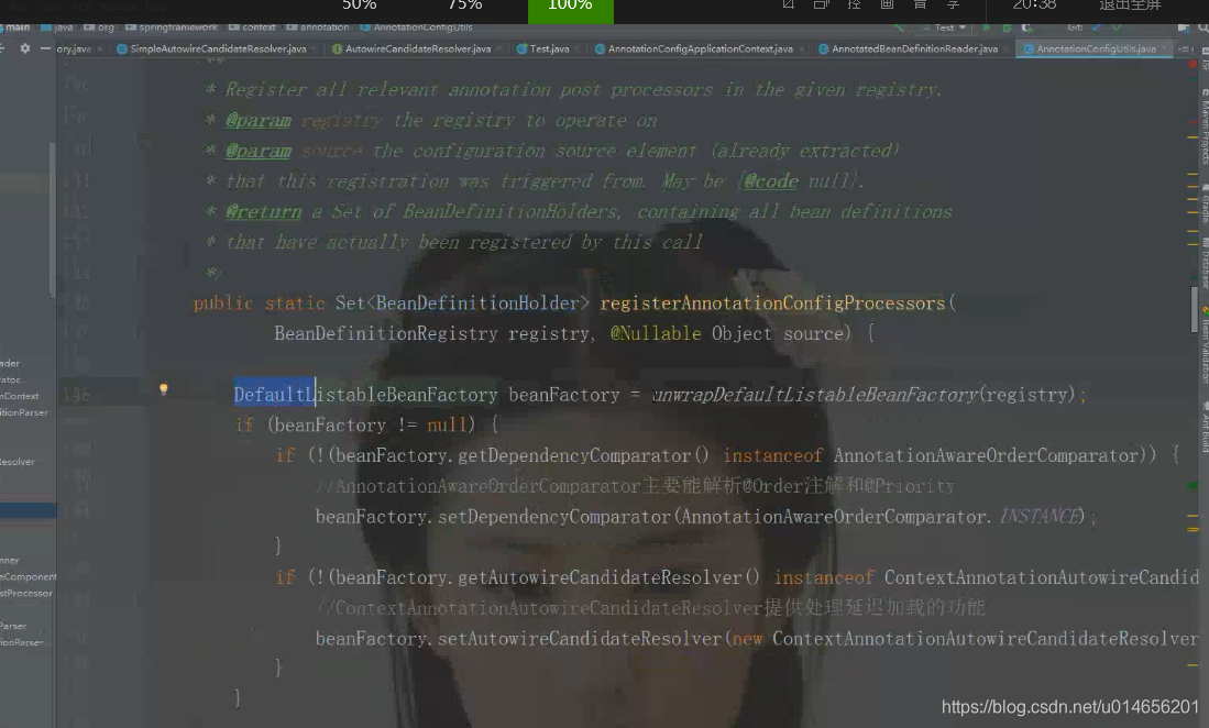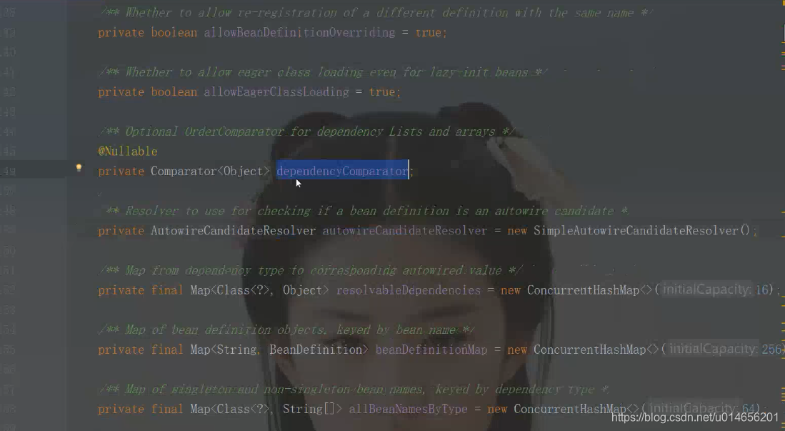 主要的dependencyComparator 工厂用来处理类的实例化的顺序。beanDefinitionMap 用来存储类的描述信息。 benDefinitionMap 是一个key为beanName,value为BeanDefinition类型的map.