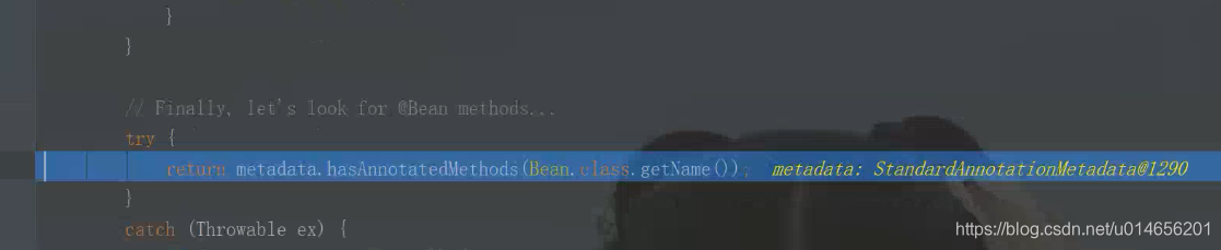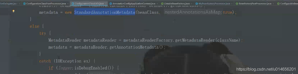 判断不是AnnotatedBeanDefinition 类,如果是new SttandardAnnotationMetadata类,获取元数据。