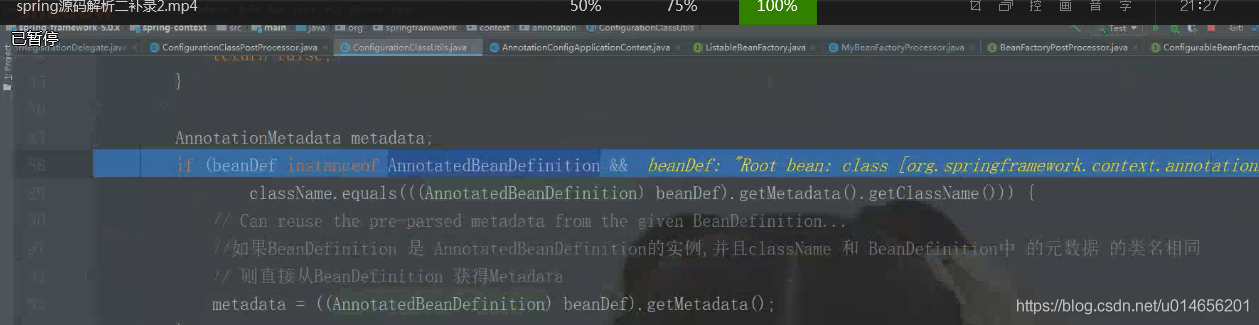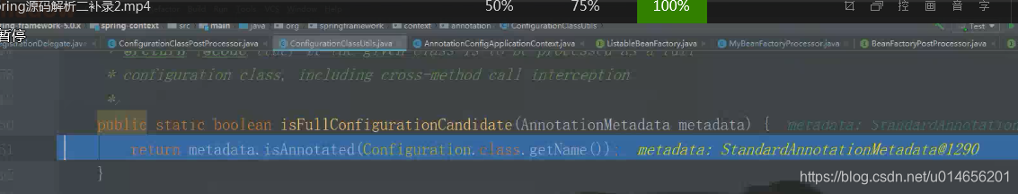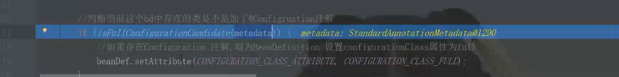 判断是否是AnnotatedBeanDefinition 类,如果是强转为AnnotatedBeanDefinition类,获取元数据。