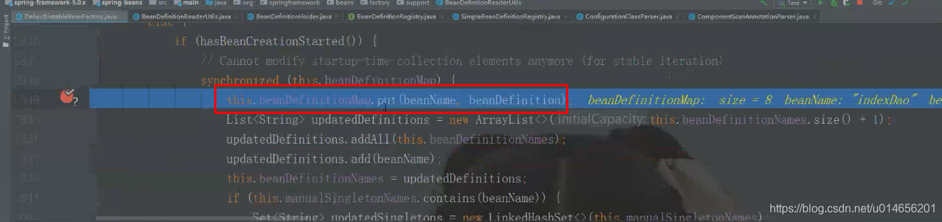 把扫描出的bean(indexDao) 类添加到beanMapDefinitionMap 中。
