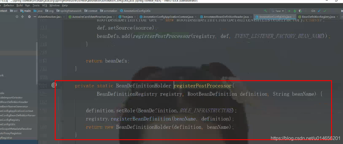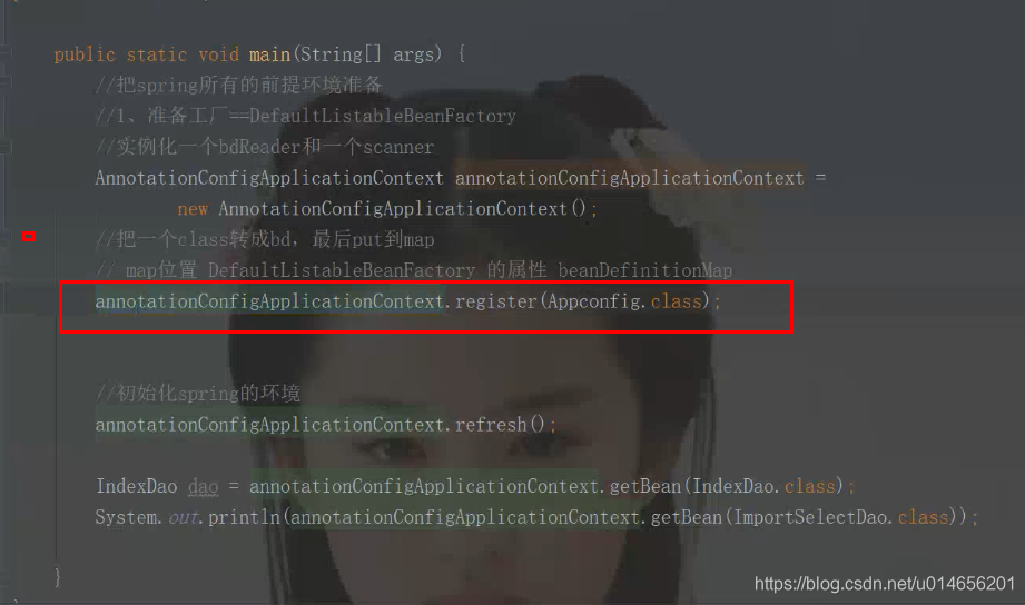 图7 给registry赋值,并委托给AnnotationConfigUtils来实现 利用registry来往beanDefintionMap中放bd.