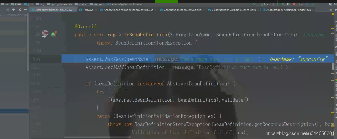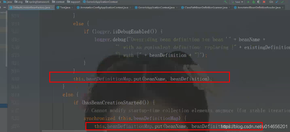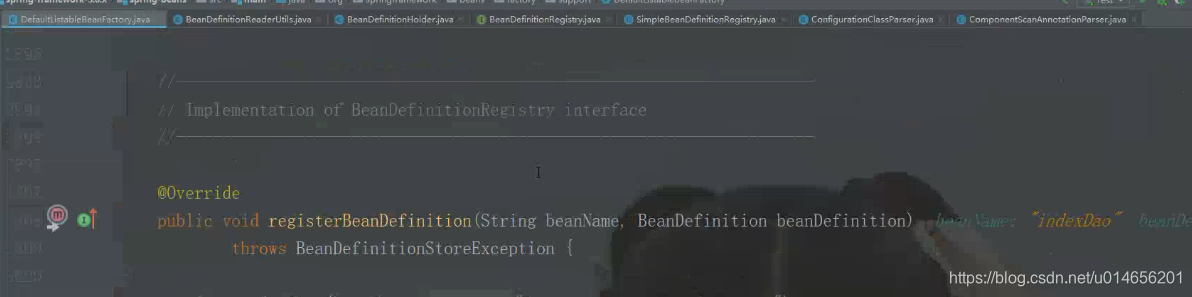 图21经过把传进来的类转换为bd。然后调用registerBeanDefinition() 方法把 bd放进beanDefinitionMap中去,图22.