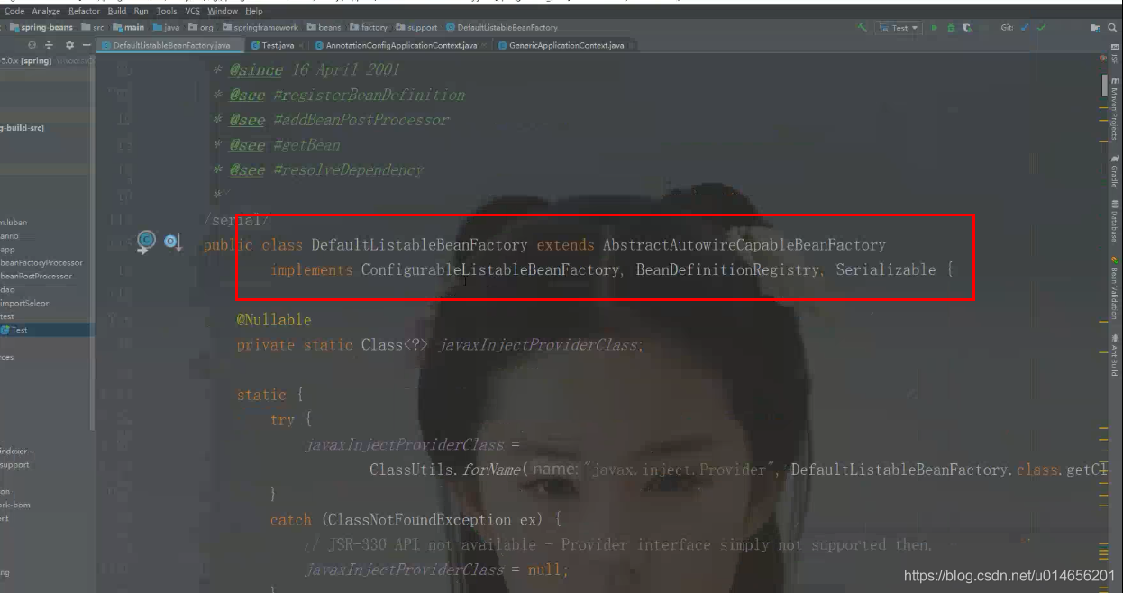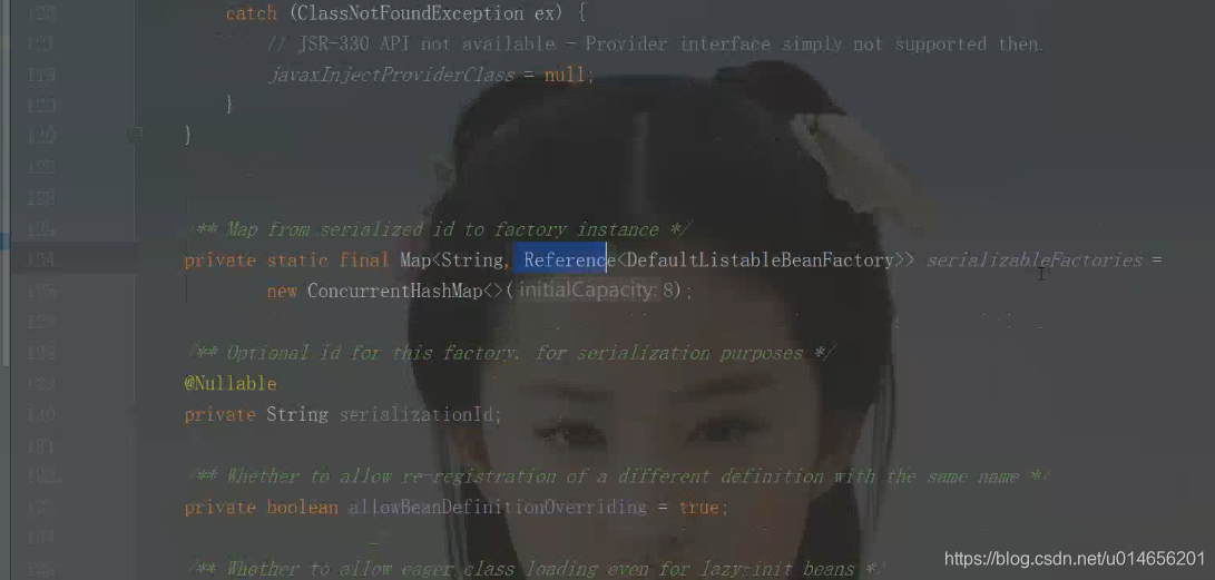 GenericApplicationContext()构造器 会创建一个DefaultListablieBeanFactory()对象。赋值给beanFactory。 图4对DefaultListablieBeanFactory类进行详解。图4会对一些关键的属性进行解释。