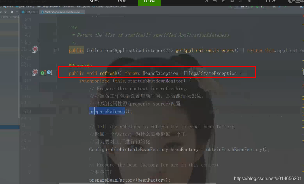 refresh()方法 准备好工厂,实例化对象。 prepareRefresh() 。准备工作包括设置启动时间,是否激活标识位,初始化属性源配置。得到一个beanFactory工厂,为什么需要得到一个beanFactory工厂,因为需要对beanFactory工厂进行一些设置。