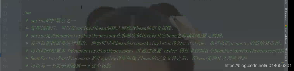 spring 提供一个接口来方便插手spring工厂的实例化过程。这个接口是BeanFactoryPostProcessor接口。图30举例说明.