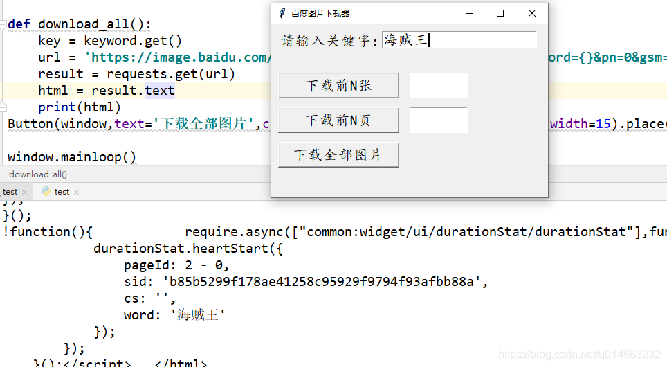 Button(window,text='下载前N张',command=download_num,font=('楷体',16),width=15).place(x=10,y=70)