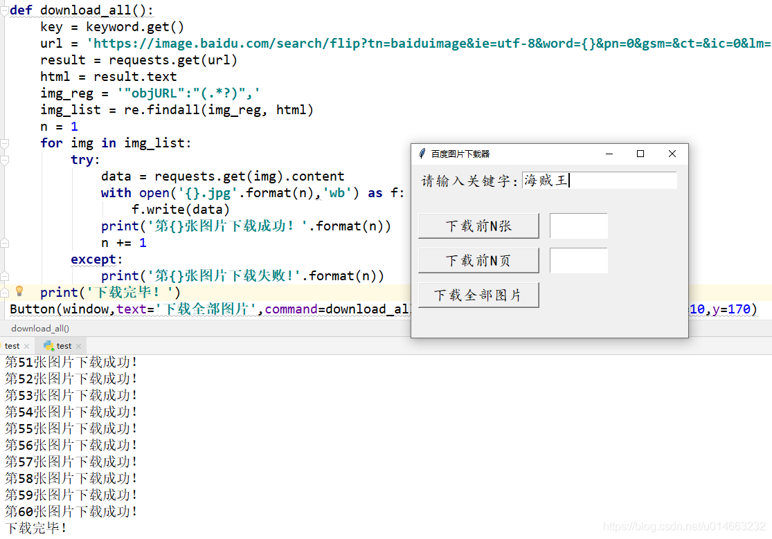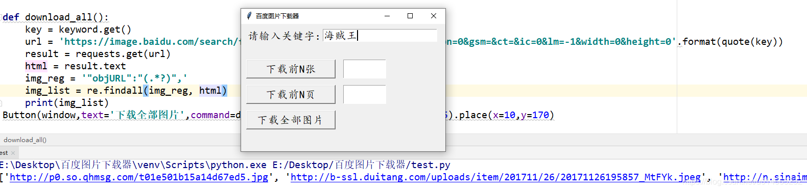 Button(window,text='下载全部图片',command=download_all,font=('楷体',16),width=15).place(x=10,y=170)