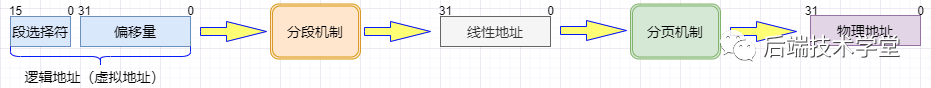 把虚拟地址转换成内存的物理地址,这中间涉及利用 MMU 内存管理单元(Memory Management Unit)对虚拟地址分段和分页(段页式)地址转换,关于分段和分页的具体流程,这里不再赘述,可以参考任何一本计算机组成原理教材描述。