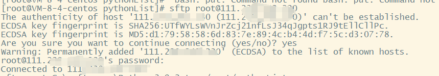 2. put:上传文件到远程服务器。