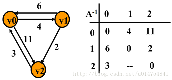 A(0)[i][j]是从顶点vi到vj, 中间顶点是v0的最短路径的长度;