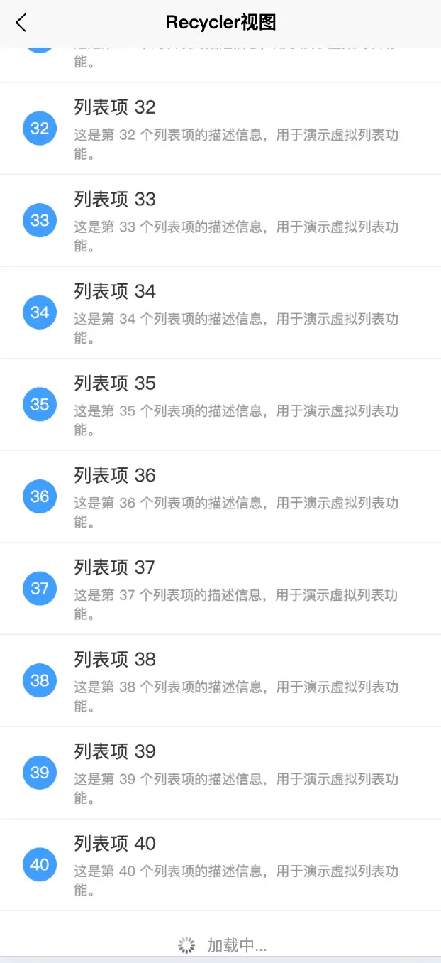 - 建议数据源item数量较大时使用虚拟列表,否则普通列表性能更好