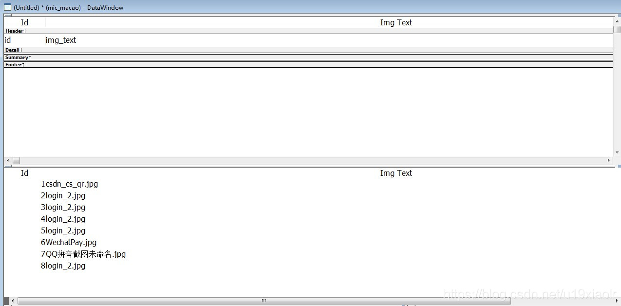 当刚刚创建这种样式的数据窗口时,字段、标签的布局和 Grid显示样式的数据窗口相同,都是横向排列的,但是字段之间没有网格线分隔。字段和标签的布局可以随意调整,在header band中的标签可以随意拖放到detail band中,detail band中的字段也可以拖动到header band中。这种显示格式的数据窗口布局安排非常灵活,开发人员可以根据需要设计字段和标签的布局,然后手工画线制作表格,在制作中国式报表时经常使用,虽然比较烦琐,但是表格比较美观,比较适合中国式报表的要求,另外,这种格式的数据窗口在数据录入、查询时也经常使用。