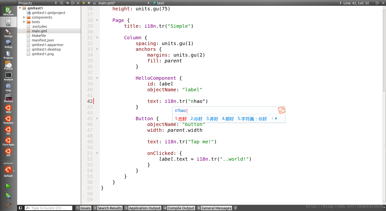 搜狗输入法是一个非常流行的输入法。在Ubuntu系统上没有默认安装这个输入法。在网上搜索,会发现不同的网站给出不同的方法。有些是工作的,有些不工作。现在,这里我把我的体会及安装步骤写下来。希望对开发者们有帮助。中文输入法对我们在Ubuntu Phone上开发中文的应用也是非常有帮助的。安装好中文输入法,我们可以在Qt Creator及Scope的测试工具中输入汉字来开发我们的中文应用。